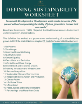 Explore what sustainability truly means to you personally. This reflective worksheet helps you develop your own evolving definition of sustainability and discover practical ways to bring it into your everyday life.